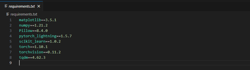다운받은 CutPaste 폴더의 requirements.txt에는 필수 다운로드 라이브러리의 버전을 설명해주고 있다.